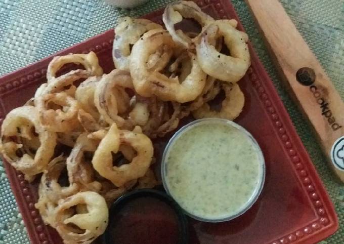 To get started with this particular recipe, we have to first prepare a few ingredients. You can have onion rings using 3 ingredients and 5 steps. Here is how you cook it.