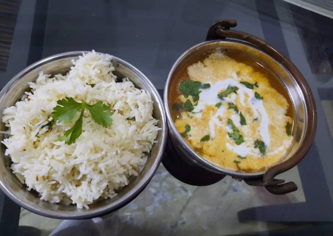 - Soaked your rice, Take a pan add 2 cup water,when the water boiling add jeera, Salt and rice, cover it with lid. After 10 min your rice cook well.garnish with coriander leaves. Serve your dal makhani with jeera rice.