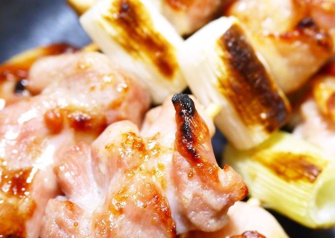 - Skewer on a stick alternating between white leek and chicken. Wrap the ends of the skewers with foil to prevent burning..
